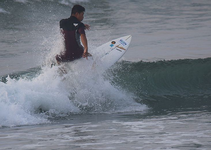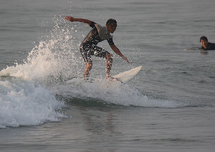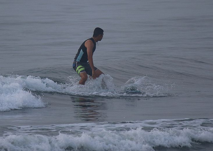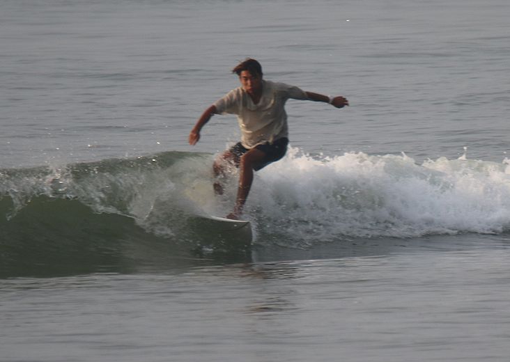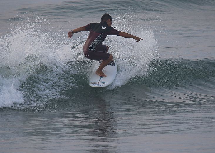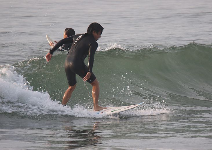 地形の良い棚に、波が当たってる、時間帯にサーフィン