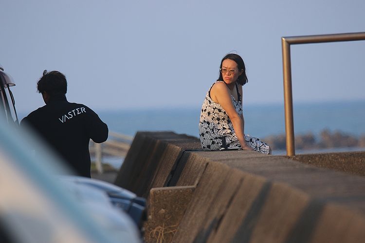 夕方海に