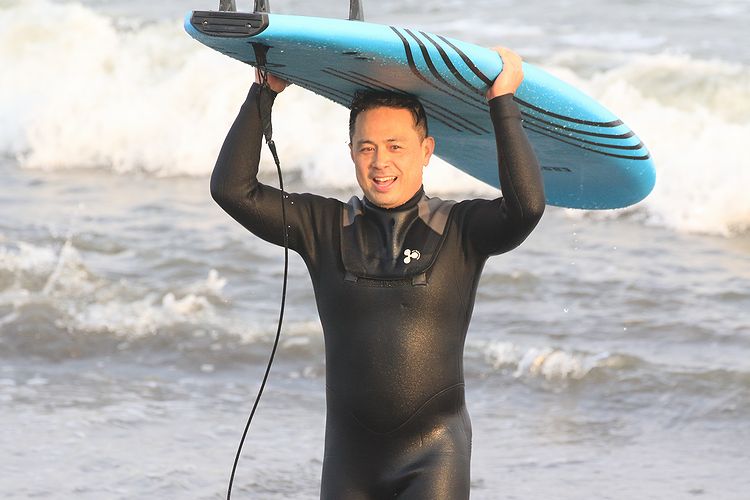 今日は韓国から遊びに来て頂いたキムさんのサーフコーチング
