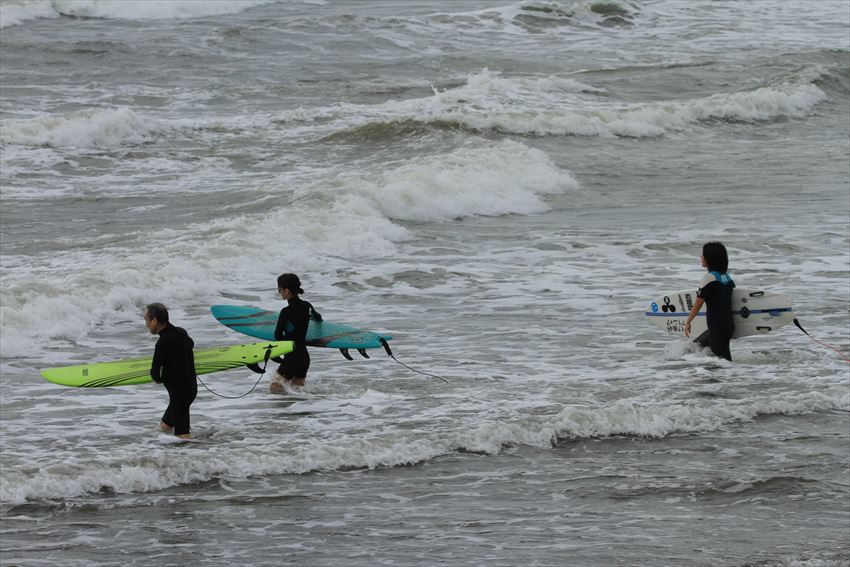 皆さん、ロングライディングを決めてサーフィンを楽しんでいた。