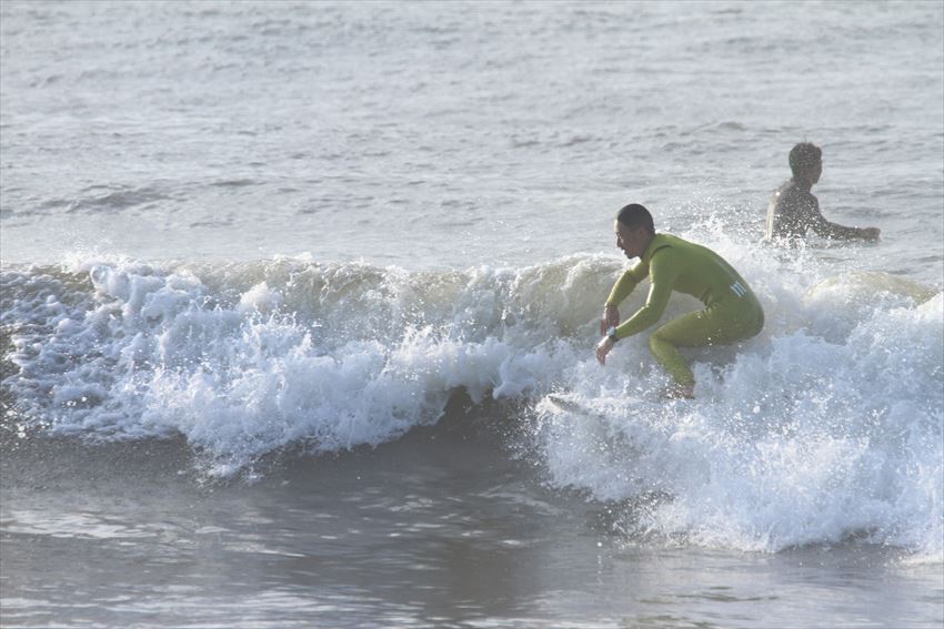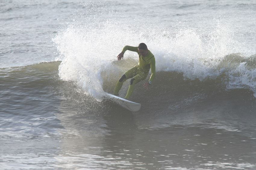 ボトムターンからキレキレのカービングターンを決めていた