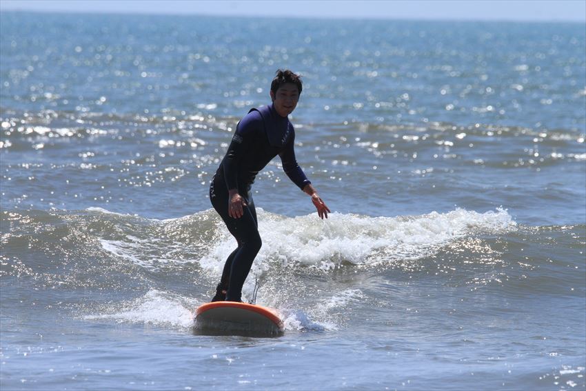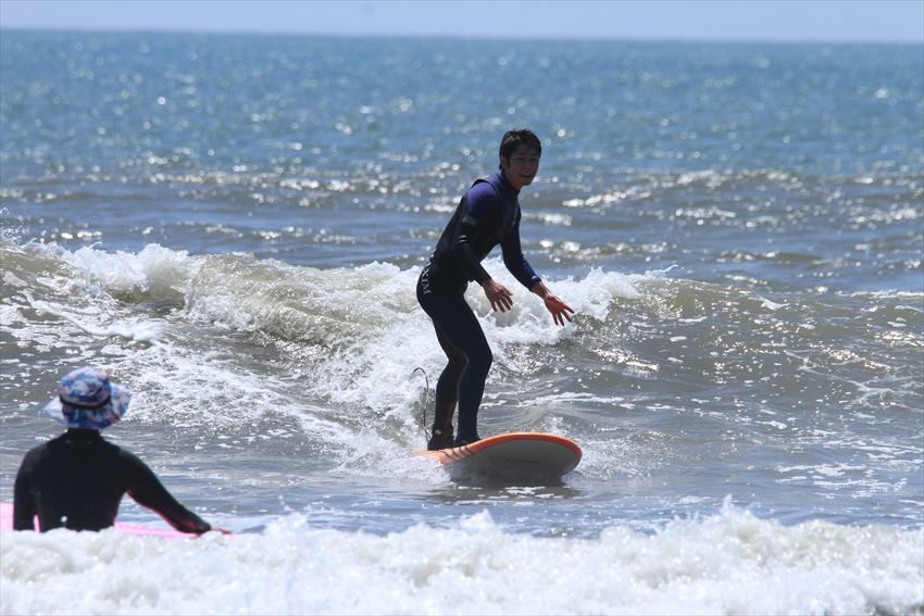 初サーフィンを楽しむみどりさん