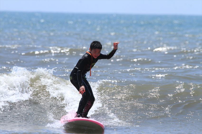 笑顔でサーフィンを楽しむりなちゃん