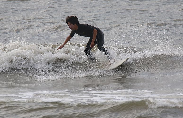 今、潮が満ちてる時間帯が一番波に乗るのが難しくなります