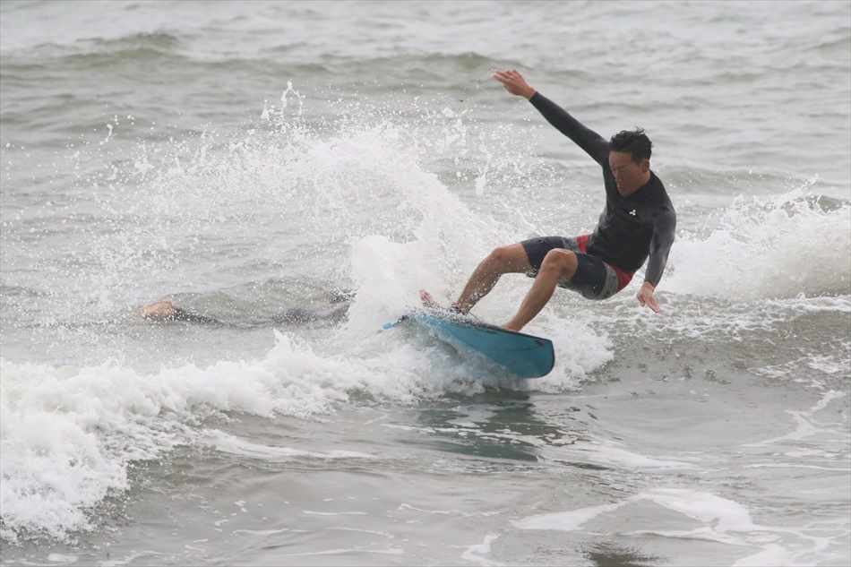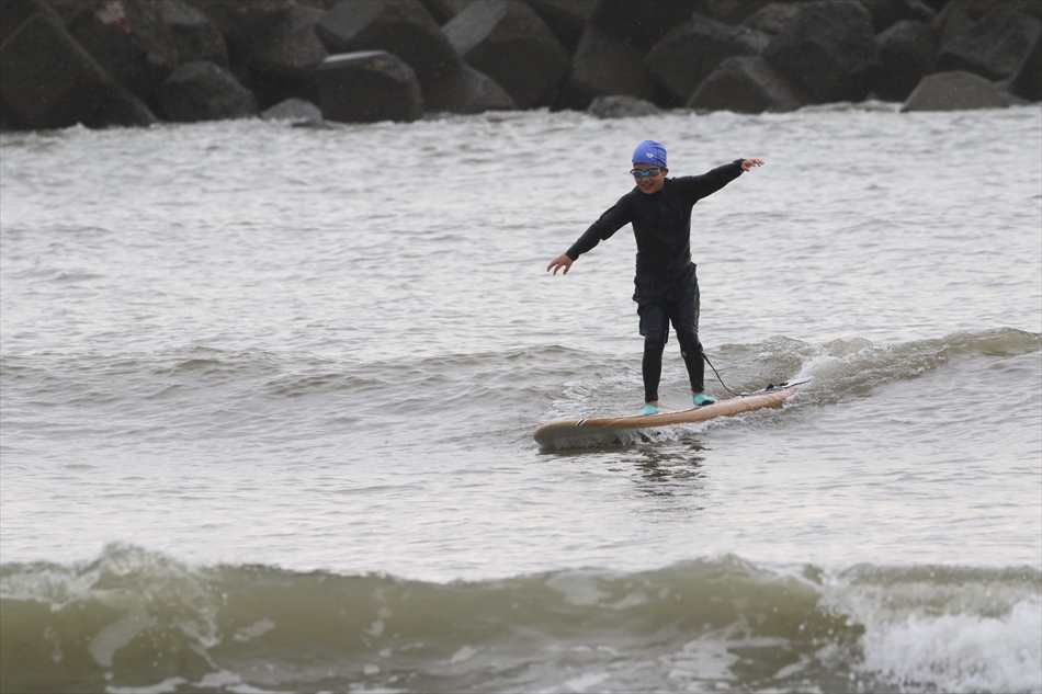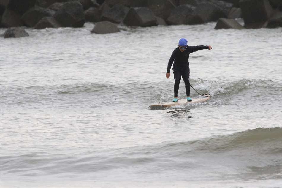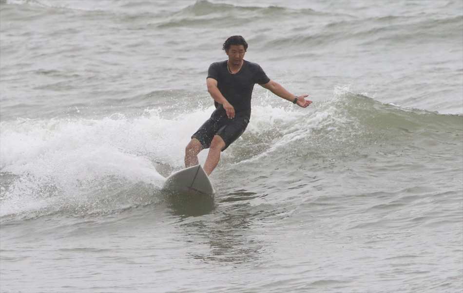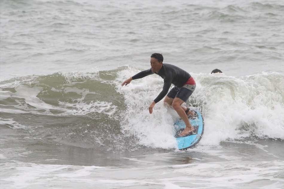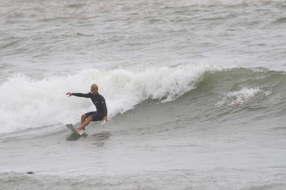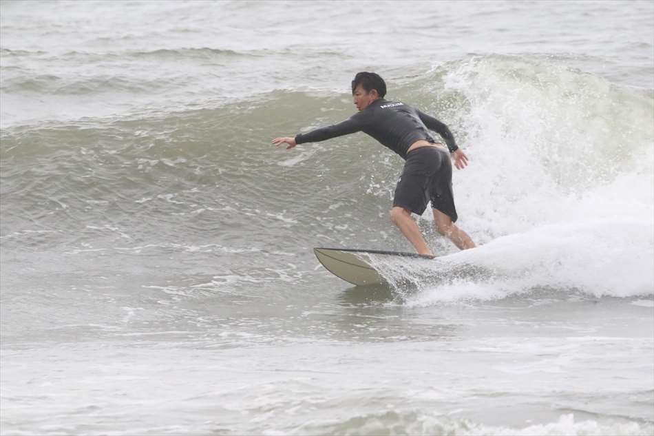 ロングライディングを決めてサーフィンを楽しんでいた。