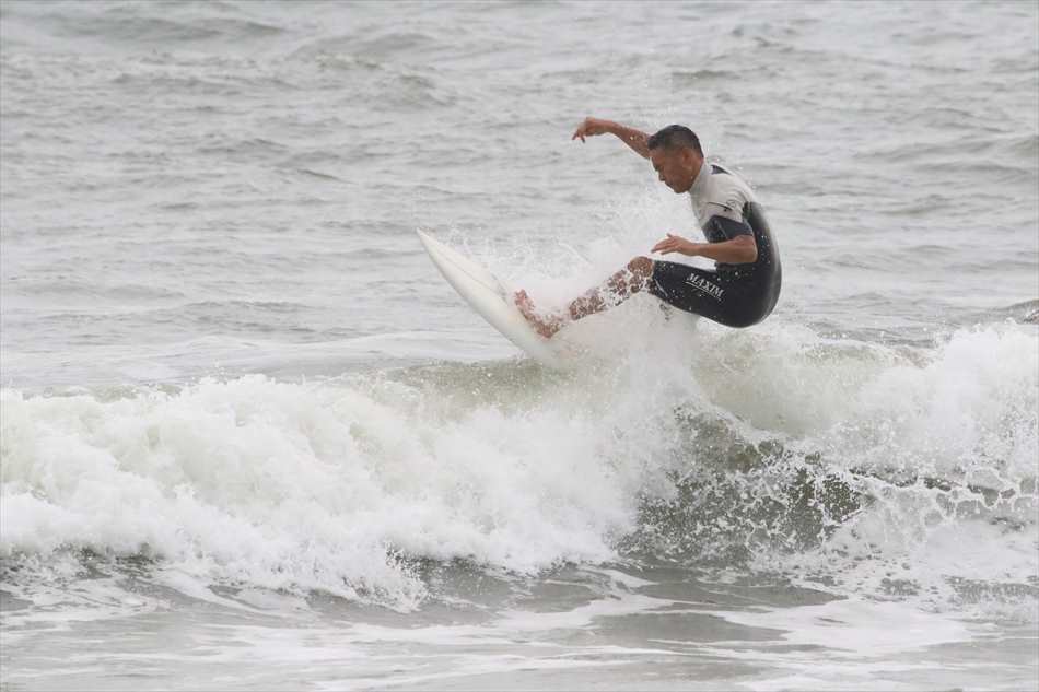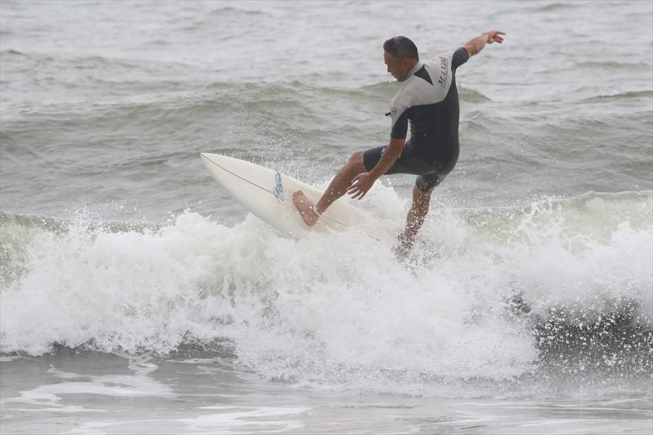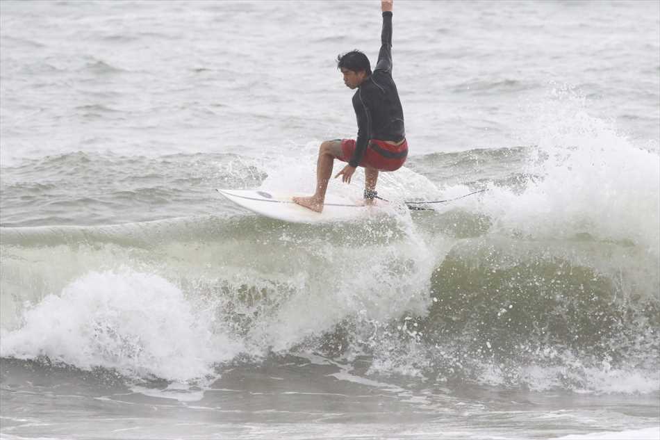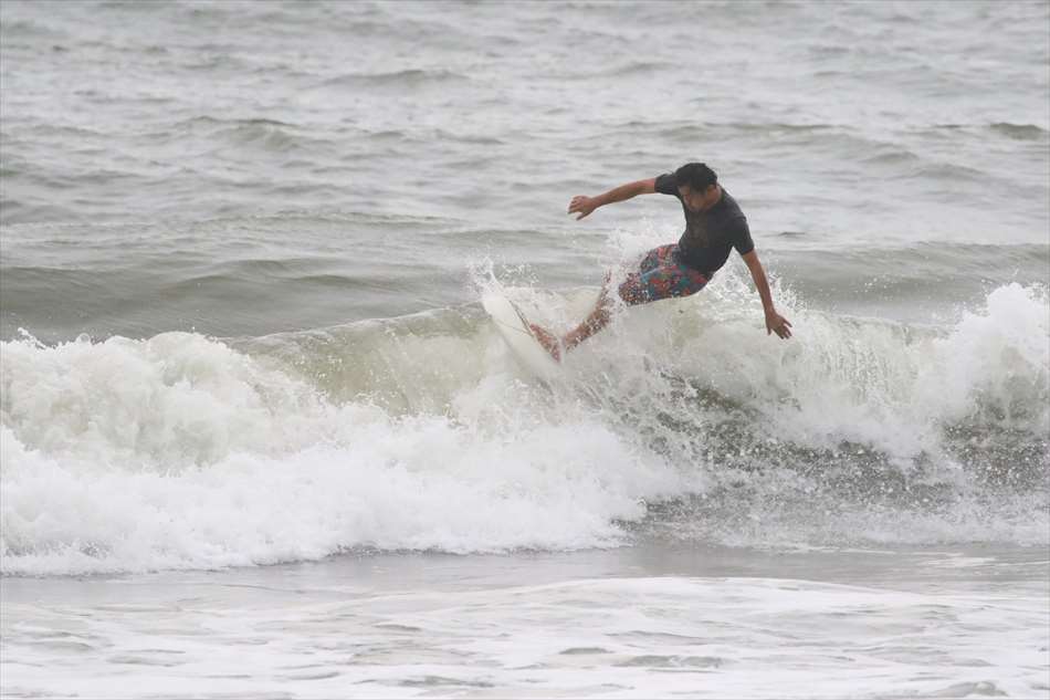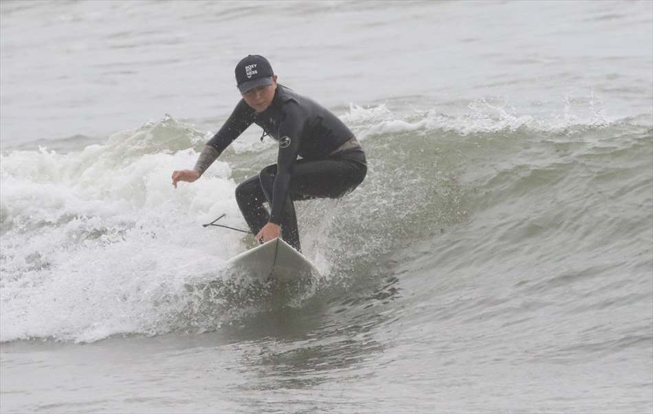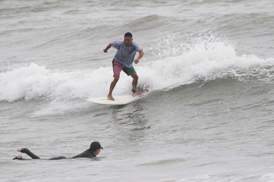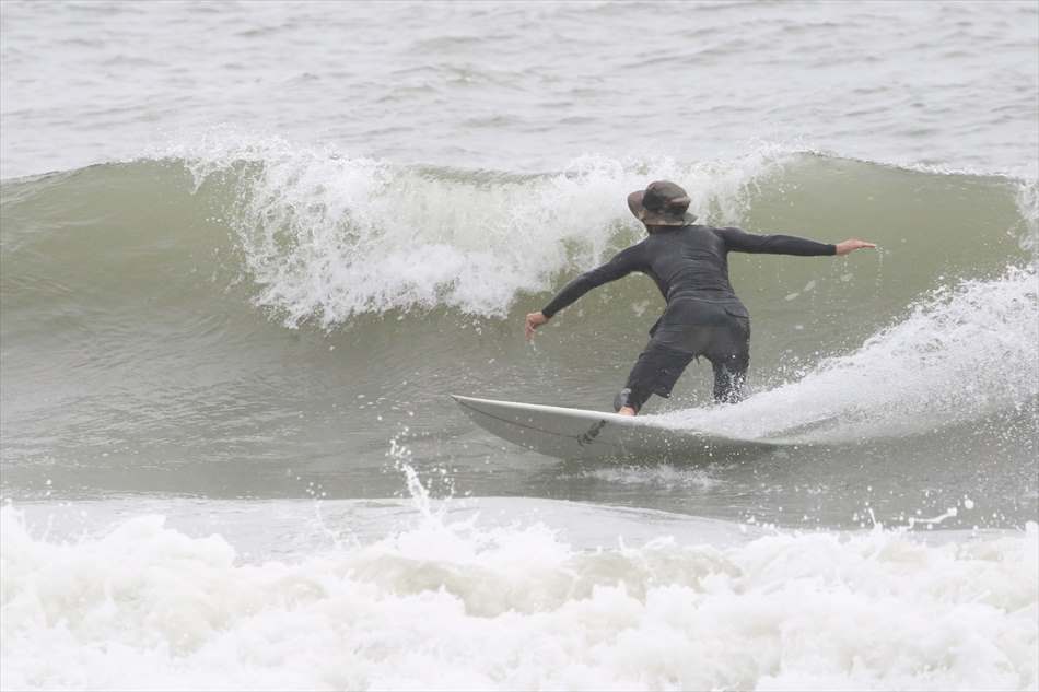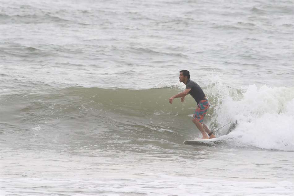 ロングライディングを決めてサーフィンを楽しんでいた。